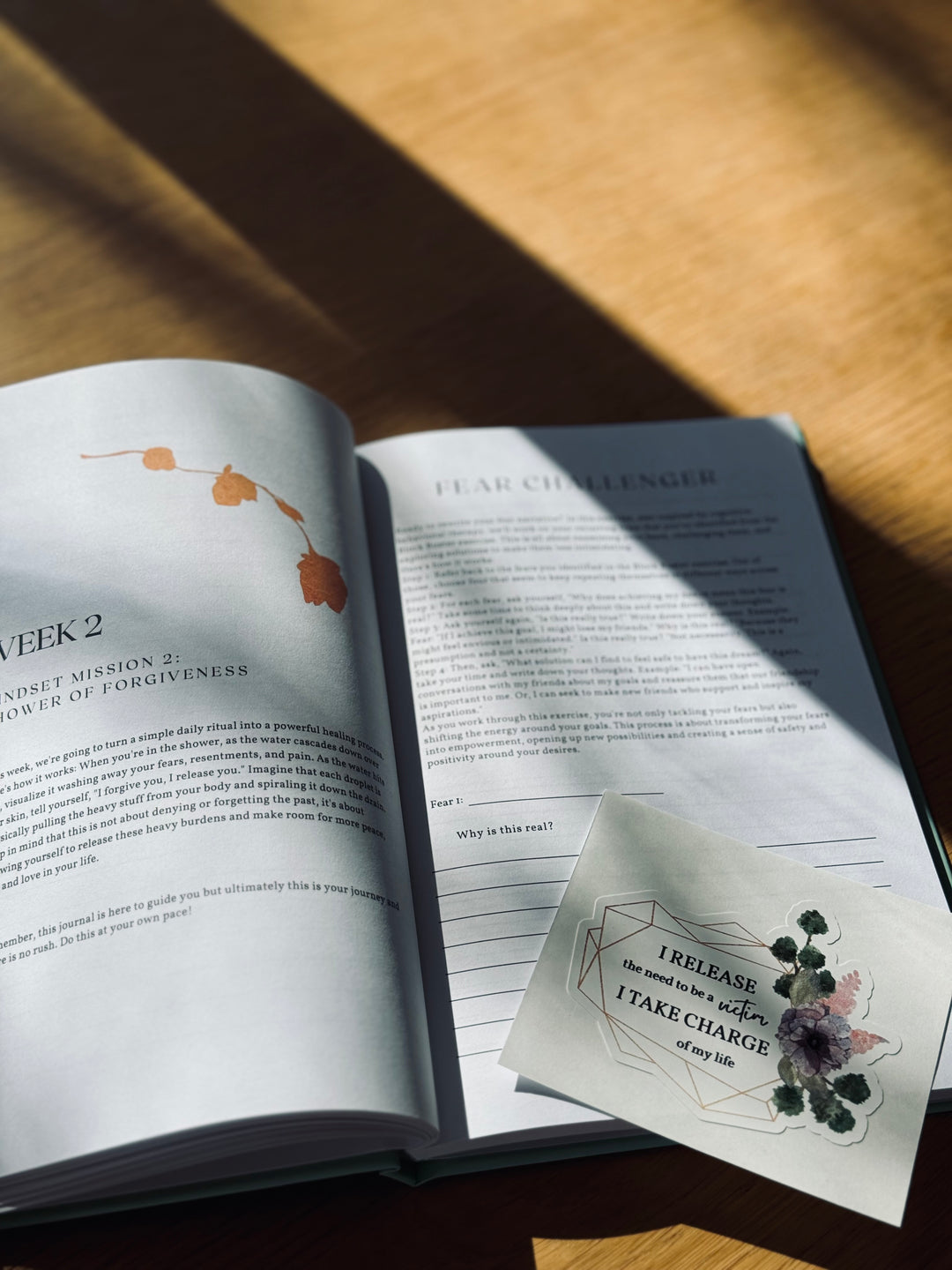 A 6-month transformative journal designed around themes like Awareness, Forgiveness, Acceptance, Release, Vision, and Embodiment. Exercises, reflections, and mindset missions pave the way for a deeper dive into your inner self.